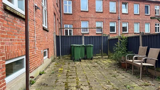 Til hver lejlighed medfølger et rummeligt kælderrum samt adgang til yderligere et toilet i kælderplan, hvilket bidrager til ejendommens funktionalitet. Fællesarealet bag ejendommen er opdelt i to zoner: en stor, stenbelagt terrasse, ideel til ophold og sociale aktiviteter, samt et bagvedliggende, grønt område med en hyggelig og afslappet atmosfære.